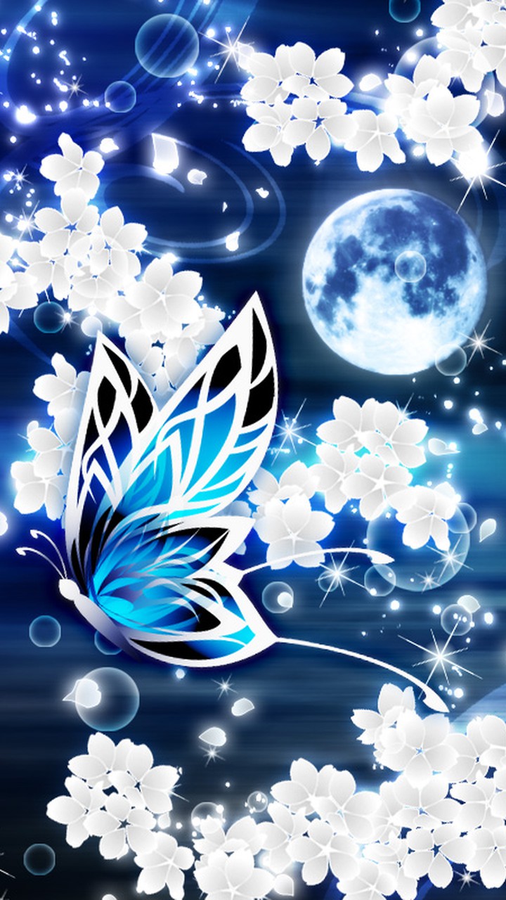 月夜に舞う蝶と桜が美しい