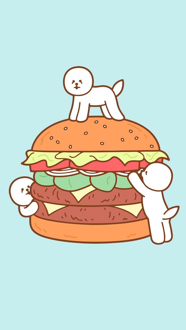 ハンバーガーとビション・フリーゼのポップなきせかえです♪