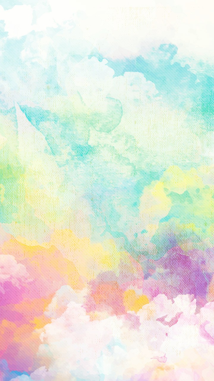 水彩タッチで描かれた、パステルカラーの雲のテーマ。