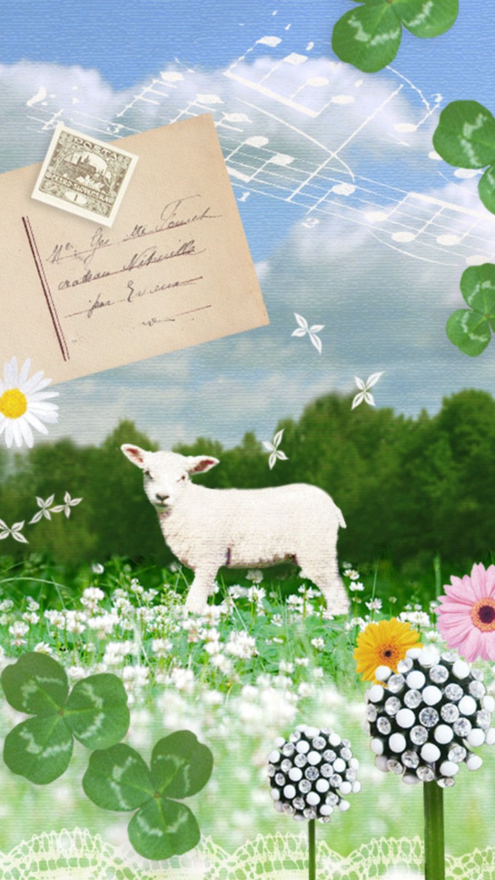 お花が咲く草原と羊のきせかえテーマ♪
